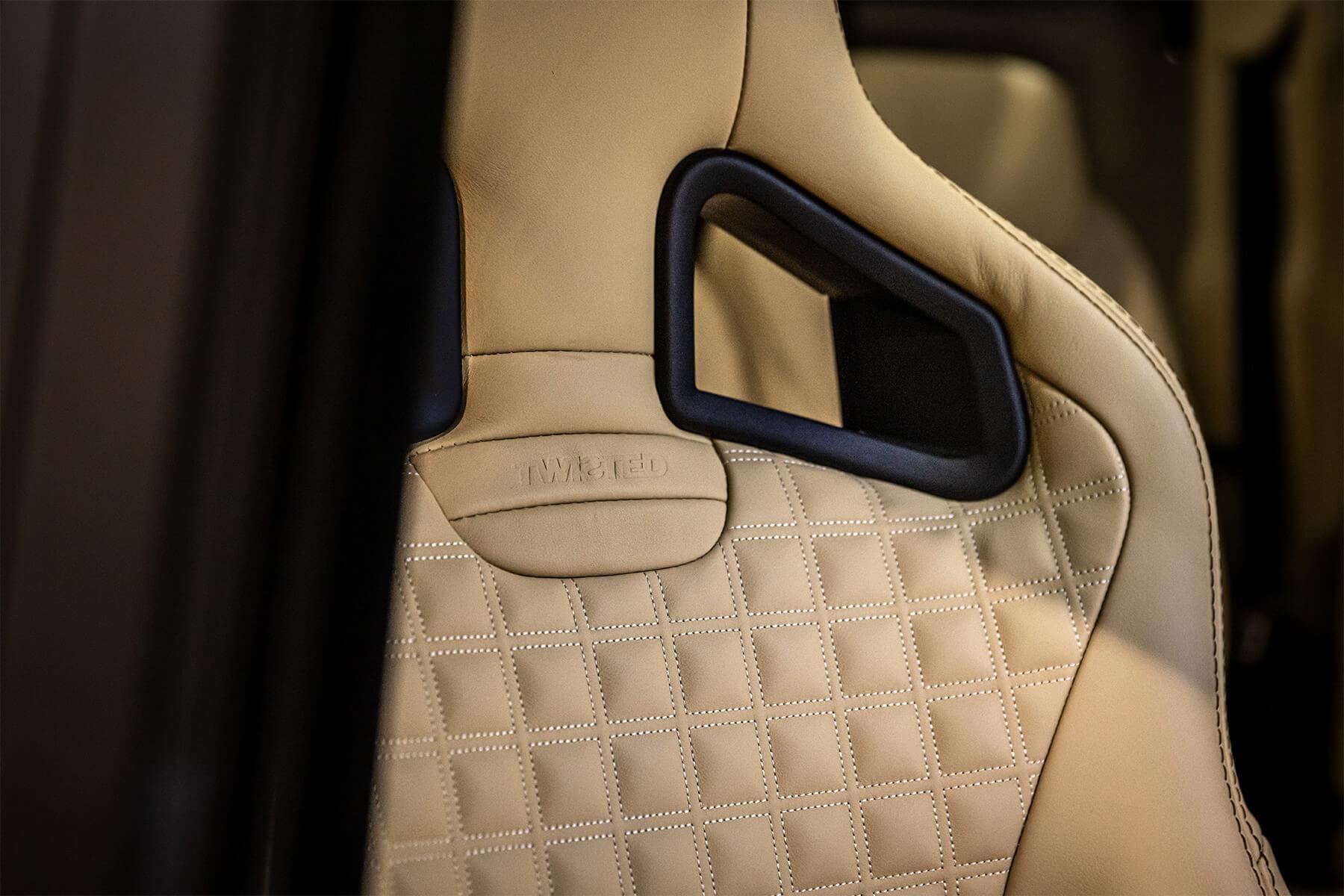 エンジンは6.2リッターV8エンジンと2.3リッター直列4気筒ターボエンジンから選択可能。ミッションは従来のマニュアルからオートマ化されているのも嬉しいポイントです。さらに、サスペンションやホイールなどの足回りはTWISTEDオリジナルの専用パーツが採用され、ロゴ入りのブレーキキャリパーが存在感を際立たせます。シートレイアウトから外装、内装、各種装備に至るまで、およそ考えられるすべての理想が思い通りになるのです。