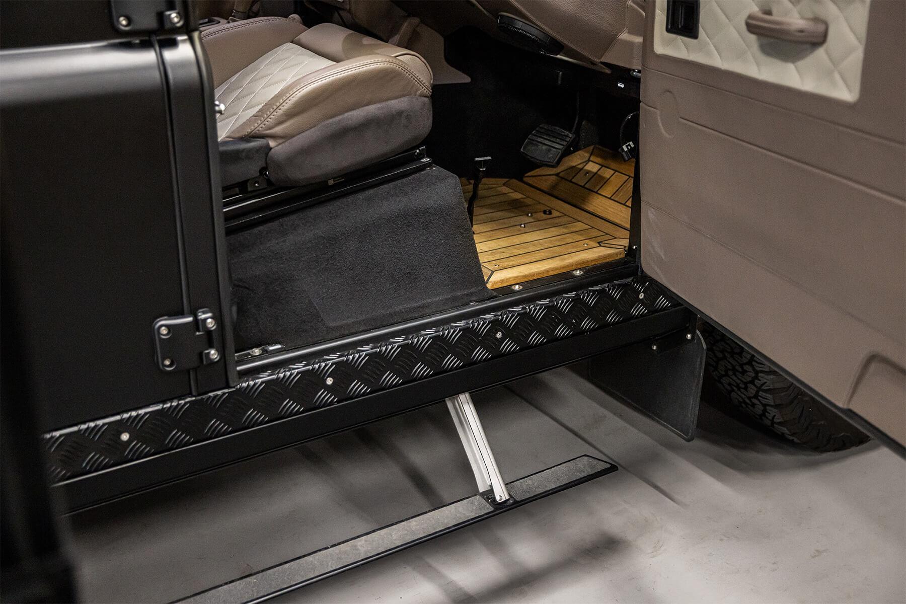 ベースとなるのは、1990年から2016年まで生産されていたオリジナルモデルのディフェンダーが中心で、熟練の職人がひとりずつアサインされます。一度すべてを分解し、顧客のオーダーに合わせて組み上げるプロセスは、およそ500時間かかるといいます。塗装の下処理やさび止め、静粛性の向上などの基本性能の向上はもちろん、その内容はまさに“再構築”と呼ぶに相応しいこだわりようです。
