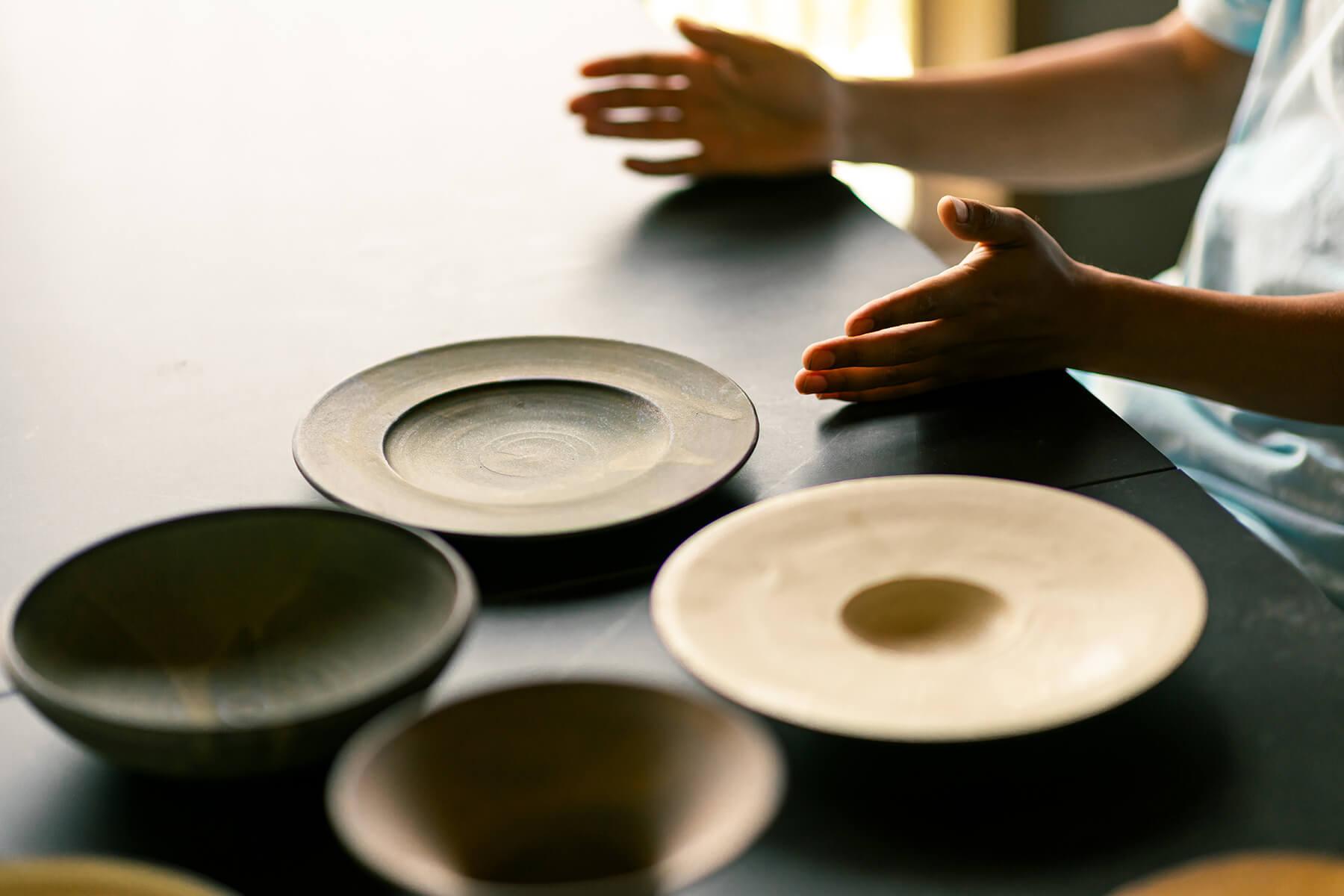 器は料理人にとっての道具であり、明確な意思が宿った道具には美しさが宿ります。そして、私たちにとっては食事を楽しむための大切な舞台装置のような存在でもあります。Keiさんに話をうかがっていると、シェフとの緊密なコミュニケーションが作品に大きな影響を与えていることがわかります。「シェフには明確な用途や料理へのビジョンがあり、美学がある。器への要望を形にすることで、その答え合わせができる関係でありたい」と話すように、実用に即した用の美は独特の風情を纏っています。それでいてどこかおおらかで、料理に寄り添うような優しさを感じさせるのは、Keiさんの人柄によるものでしょうか。OBRAsの完成によって、これからどのような作品が生み出されていくのかも楽しみです。一般の宿泊も受け付けているとのことなので、ぜひ作家の世界観に触れてみてはいかがでしょうか。
